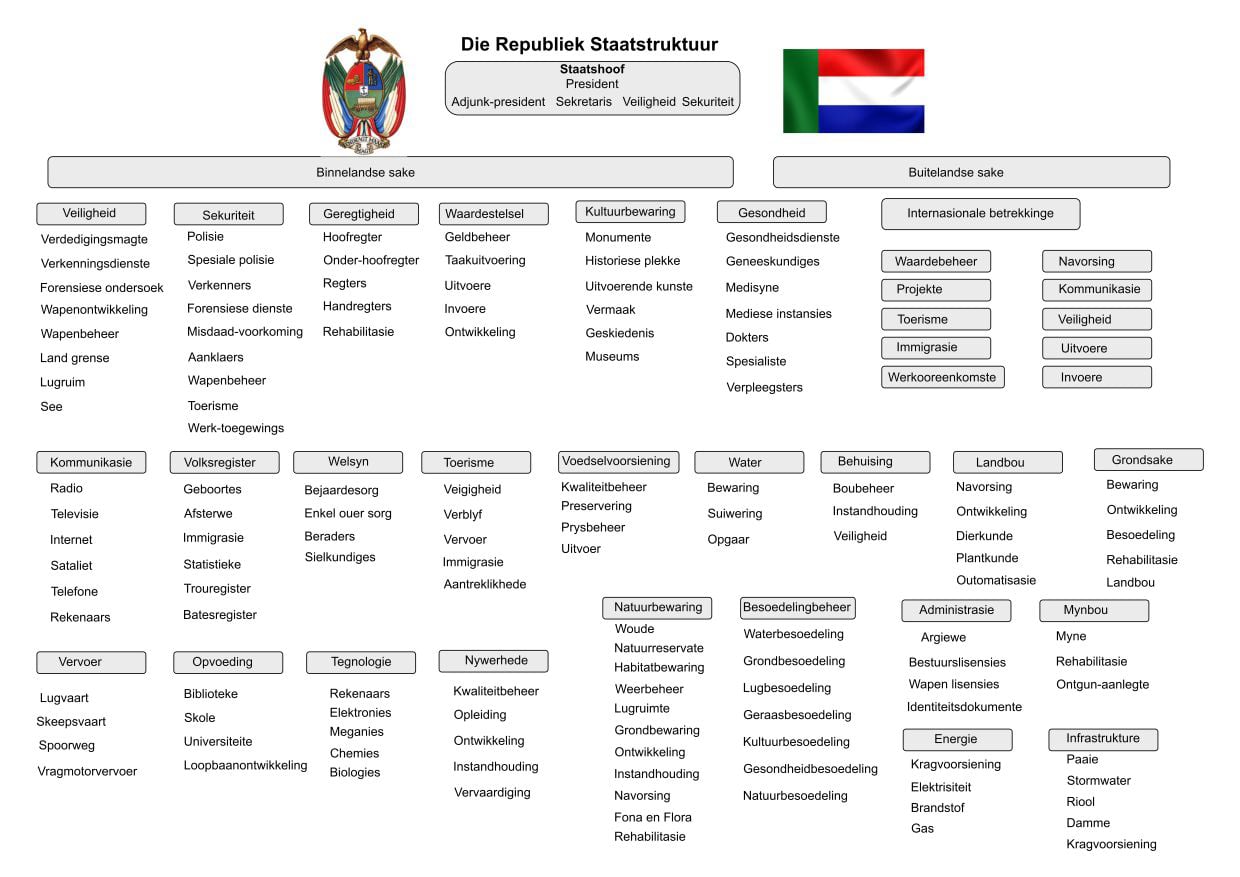 Die Staatsdiens word die Volkshuis genoem omdat alle burgers in die verantwoordelikhede en die uitvoering daarvan deel neem. Die behoud van dienste en orde word so ver moontlik onder oë gehou om te help waak teen daaglikse misdadigheid wat die volhouding daarvan vir almal belemmer.